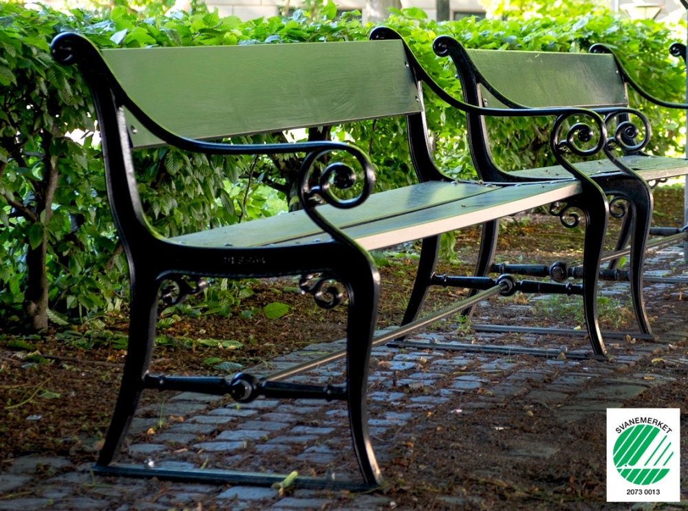 Parkmodellen / Ulefosbenken er en svanemerket produkt. Understellet støpes i Norge i resirkulert støpejern. Treverket som benyttes er Accoya®, et modifisert trevirke fra acetylert Radiata-furu. Accoya gir hele 50 års garanti mot råte over bakken, og 25 år nedsenket i ferskvann/jord. Accoya er sertifisert i henhold til en rekke standarder, deriblant Svanen. Accoya er miljøvennlig fremstilt og 100% fritt for miljøgifter. Virket er meget formstabilt, minimal krymping og vridning. Bearbeides på lik måte som vanlig treverk. Utmerket til maling pga. lite bevegelse i treet. Accoya-trevirke er UV-resistent og ubehandlet virke får en elegant sølvgrå patina med tiden. Antikkbenken leveres også med Accoya virke, men er ikke svanemerket.