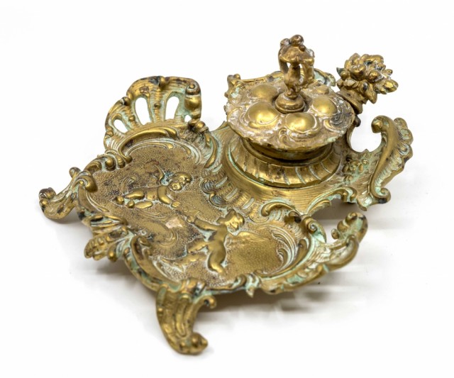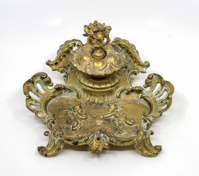 Blekkhus - skrivebordsgarnityr - messing PrisNOK950,00 inkl. mva. På lager: 1 stk. Kjøp Ønskeliste Lagerstatus: På lager: 1 stk. Artikkelnr.: S099 Del dette Produktinfo Produktanmeldelser (0) Antikk blekkhus / skrivebordsgarityr i messing. Fra sluttan av 1800-tallet. Med englemotiv. Rester av eldre messingpuss. I god stand. B: 18 cm D. / L: 15 cm H: 9,5 cm Skriv en produktanmeldelse og del dine erfaringer med dette produktet med andre kunder. Email Navn Din vurdering? 1 star 2 star 3 star 4 star 5 star 6 star Oppgi en tittel for anmeldelsen din Skriv inn produktanmeldelsen i feltet under