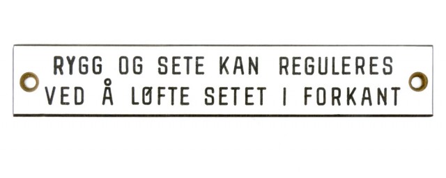 Skilt - Rygg og sete... PrisNOK200,00 inkl. mva. På lager: 1 stk. Kjøp Ønskeliste Lagerstatus: På lager: 1 stk. Artikkelnr.: H230 Del dette Produktinfo Produktanmeldelser (0) Skilt fra tog. «Rygg og sete kan reguleres ved å løfte setet i forkant» Mål: 12 x 2 cm Skriv en produktanmeldelse og del dine erfaringer med dette produktet med andre kunder. Email Navn Din vurdering? 1 star 2 star 3 star 4 star 5 star 6 star Oppgi en tittel for anmeldelsen din Skriv inn produktanmeldelsen i feltet under