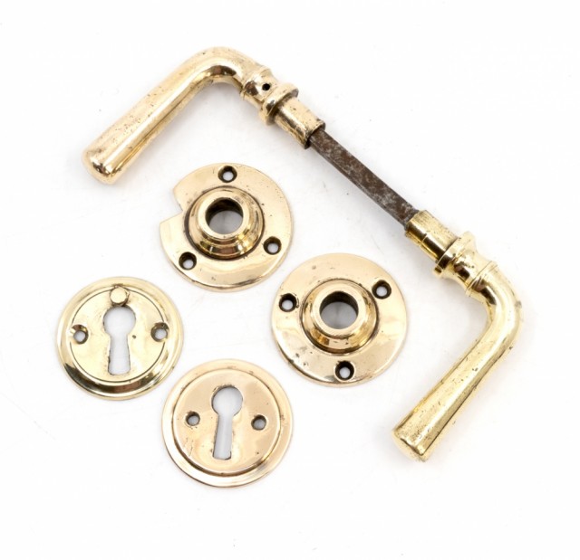 Dørvrider, messing, med skilt