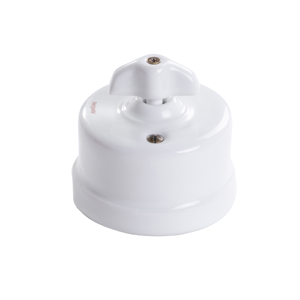Lysbryteren er laget av porselen og har en liten åpning i siden av bunnen for uttak av ledning.