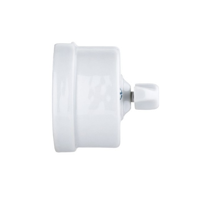 En klassisk lysbryter for utenpåliggende elektrisk anlegg. I hvitt porselen og med et utseende som var vanlig i Europa på første del av 1900-tallet.