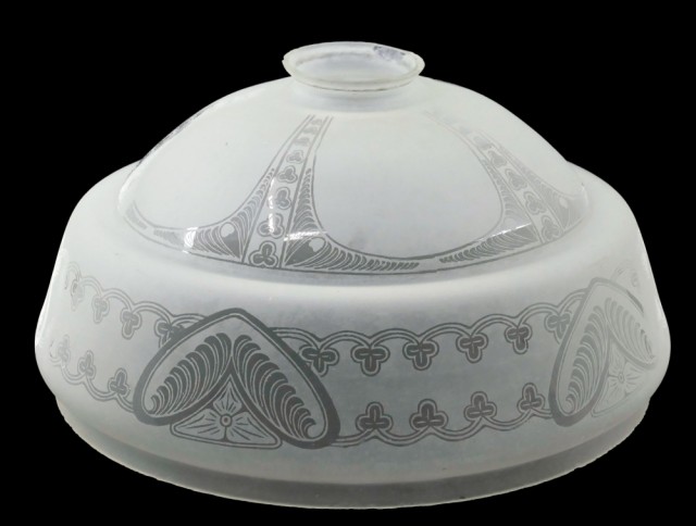 Gammel, flott lampeskjerm i frostet glass med vakkert mønster. Jugendstil.