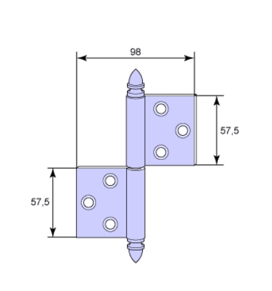 Dørhengsel med eikenøtt-avslutning. 4½" Venstre hengsel