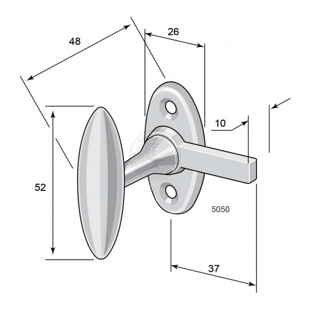 Klassisk vrider til skap med innfelt skapdør. Kan også brukes på innadslående vinduer.